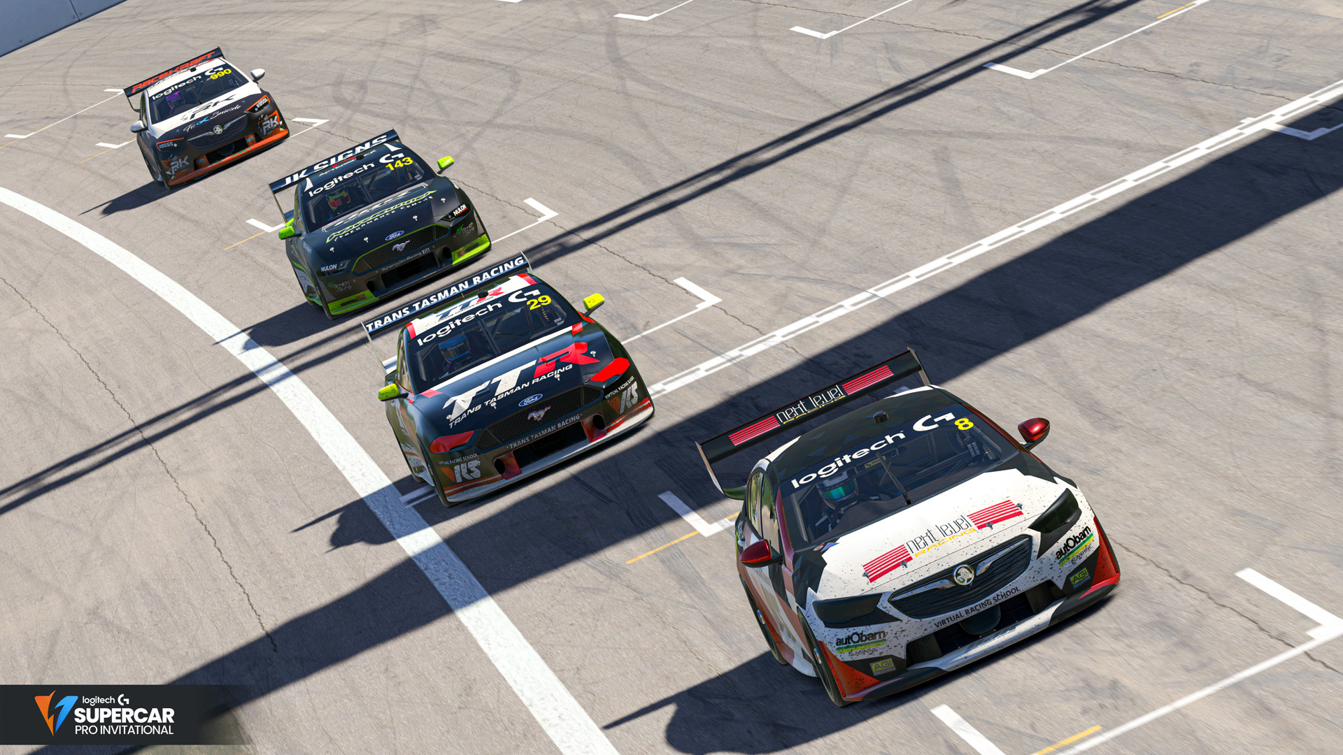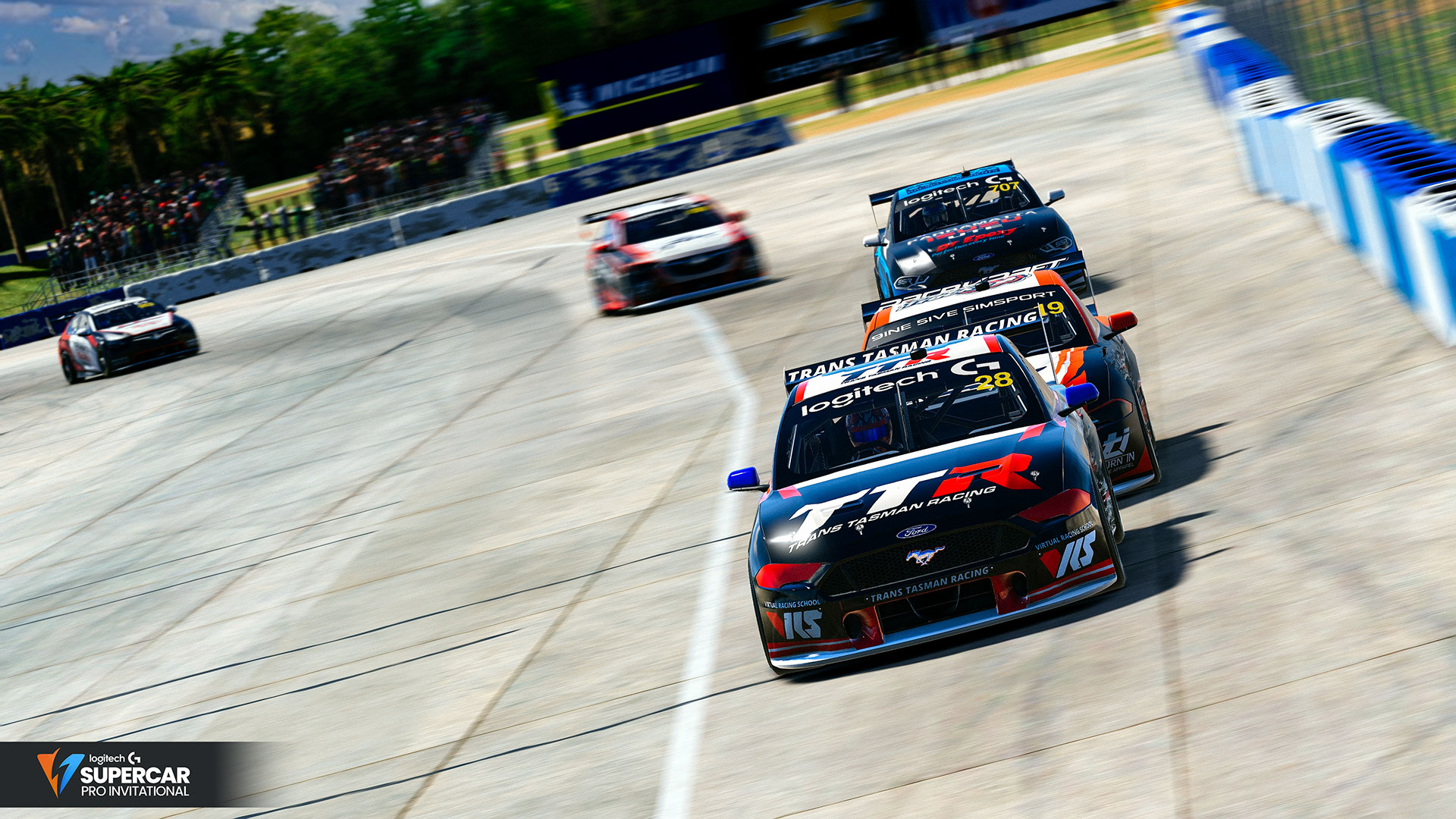 Green flag racing got underway little after 8pm, with Dylan O’Shea leading the field to the opening sequence of corners, James Scott would slot into second, with Trans Tasman Racing pair Madison Down & Jake Burton getting the better of Synergy Sim Racing’s Tom Freer, demoting the driver of the #707 Mustang to 5th by the exit of turn 1.